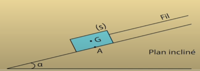 Un solide (S) de masse m= 1kg est posé sur un plan incliné d’angle α=30° par rapport à l’horizontale.