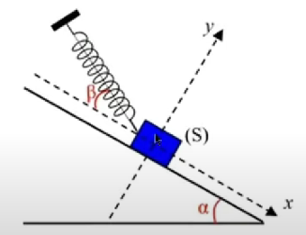 L’axe du ressort fait un angle ß=20° avec le plan incliné.
