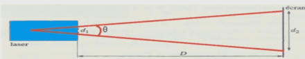 2/ Calculer la valeur de l’angle Ɵ appelé divergence du faisceau.