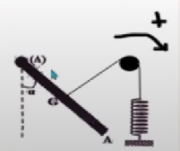 Le fil est fixé au centre G de la barre, passe sur la gorge d’une poulie et est fixé par l’autre extrémité à un ressort