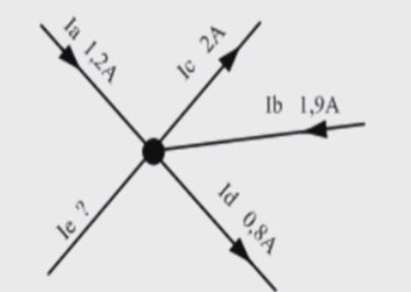 D/ Dans un noeud de 5 conducteurs on mesure la valeur de l’intensité de 4 conducteurs suivant le dessin suivant: