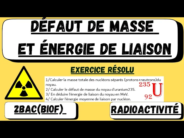 Lycée Enoncé 1: Age d'une épave. Solution Age d'une épave Enoncé 2:Énergie libérée /Émission d'un photon Explication facile. Solution Emission d'un photon Enoncé3:Comment calculer l'énergie du noyau d'uranium 235 ? Solution Comment calculer l'énergie du noyau d'uranium 235 ? Enoncé 4:Décroissance Radioactive et Demi-Vie Solution Décroissance Radioactive et Demi-Vie Enoncé 5: La perte de masse au cours de la fission de l'atome d'uranium. Solution La perte de masse au cours de la fission de l'atome d'uranium.